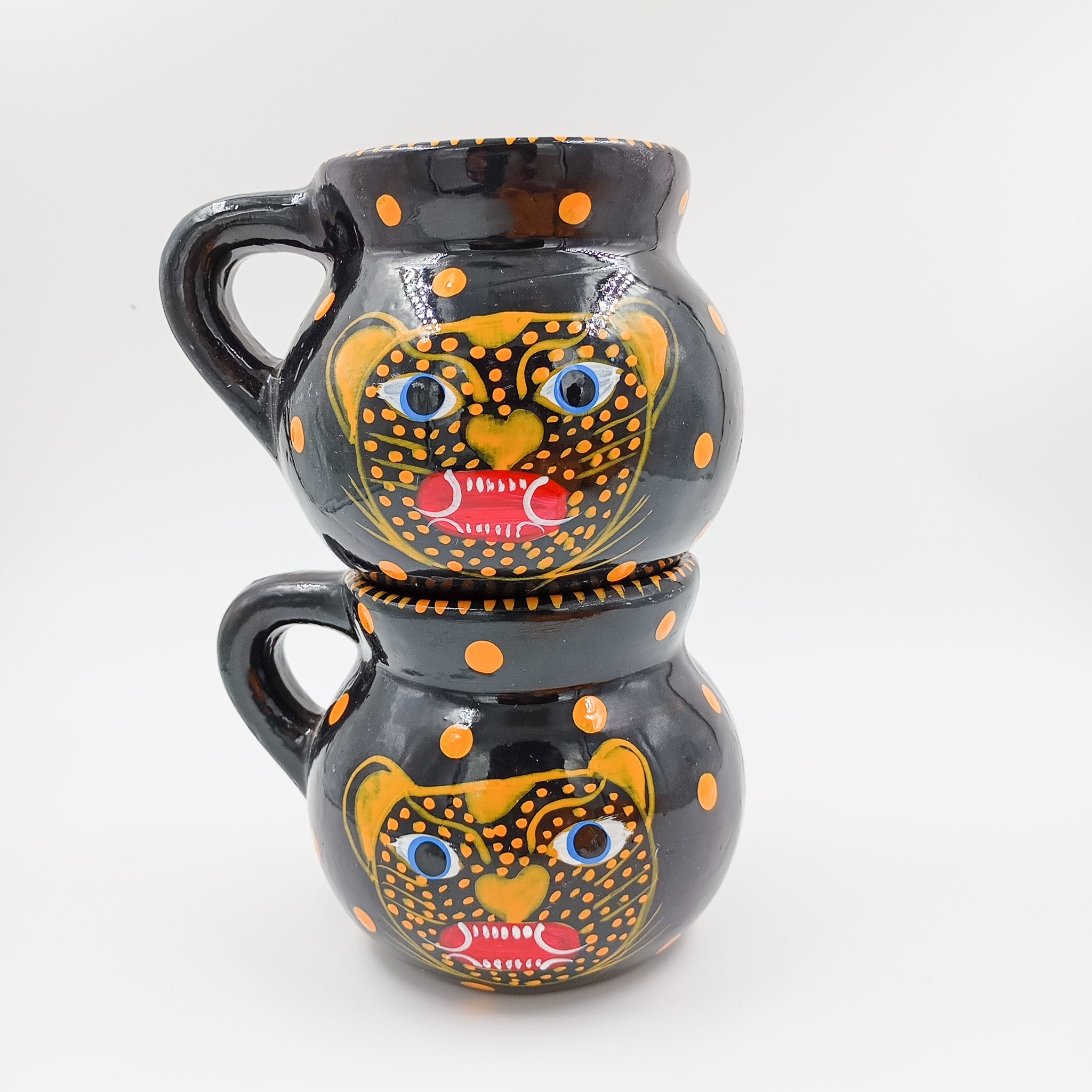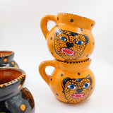 Deja que tu café de la mañana ruja con carácter. Estas tazas de barro con diseño de jaguar no solo son funcionales, son piezas únicas de arte popular mexicano, hechas y pintadas a mano. Inspiradas en el poderoso simbolismo del jaguar —guardián y protector en muchas culturas mesoamericanas—, cada taza es una explosión de color y tradición.
